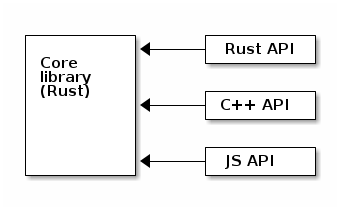 The Rust library (also known as a crate) is split into two parts, the shared implementation crate and a thin idiomatic API crate.